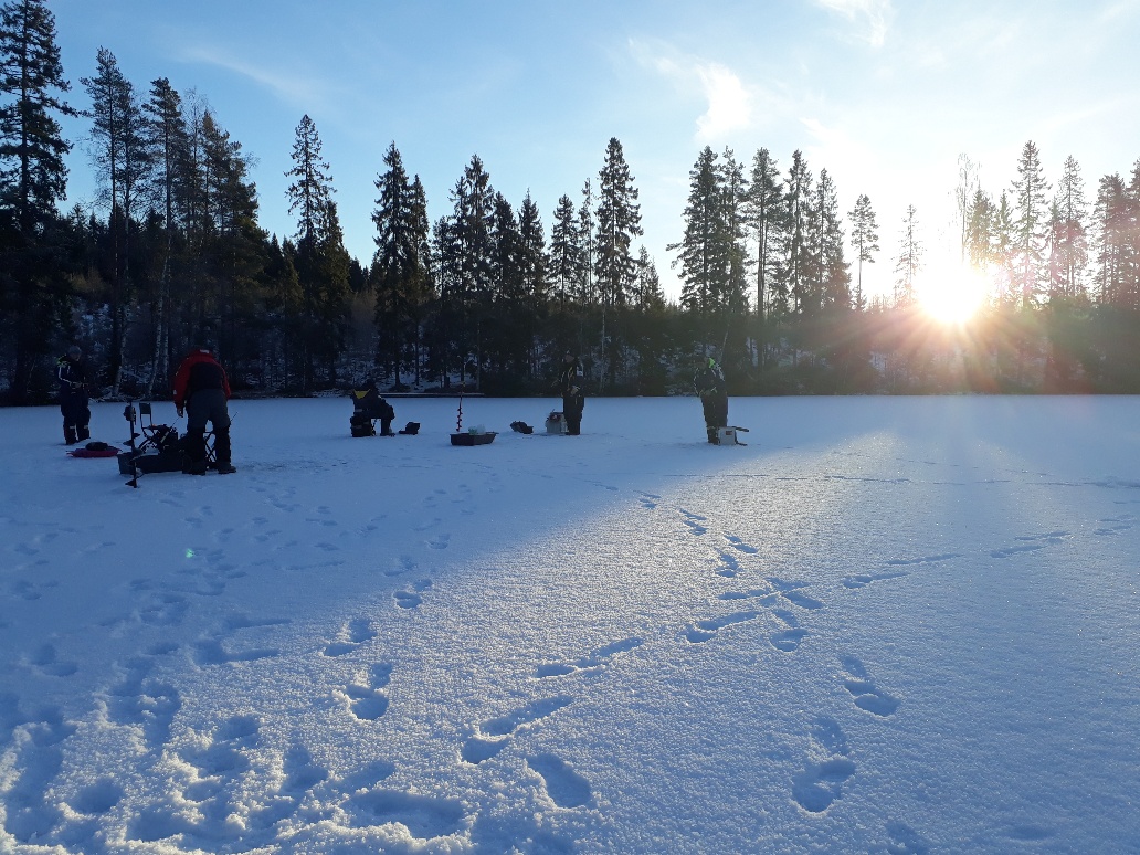 Pimpelmästerskap med Grabbarna Grus. Brynja Ulrik och Stormästaren (dvs jag själv...) vidare vart skåpet ska stå. Min regnbåge tyngde vågen rejält... ;-) 1145 g. Fick en röding i bra kondition också. Tack Dahlén, Sjögga, Nicke, Tompa, Ulrik för trevlig dag på en ny hemlig tjärn. Nya försök på isen imöra!